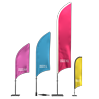 Beachflags machen stets eine gute Figur: indoor wie outdoor! Wir liefern unsere Beachflags inkl. stabilem Gestänge, einer praktischen Tasche sowie einer pulverbeschichtete Bodenplatte in schwarz (21cm x 30cm, 0,65kg) aus. Die Aufbauzeit beträgt rund drei Minuten. Bedruckt werden Ihre Beachflags einseitig vollfarbig auf 65g/qm Lightweight (B1 zertifiziert). Die bedruckbaren Stoffmaße unserer Dropflags betragen: 49cm x 145cm. Straightflags werden von uns in den Stoffmaßen 41cm x 158cm bedruckt. Die Gesamthöhe unserer Dropflag beträgt: 180cm, die Gesamthöhe der Straightflag 190cm.